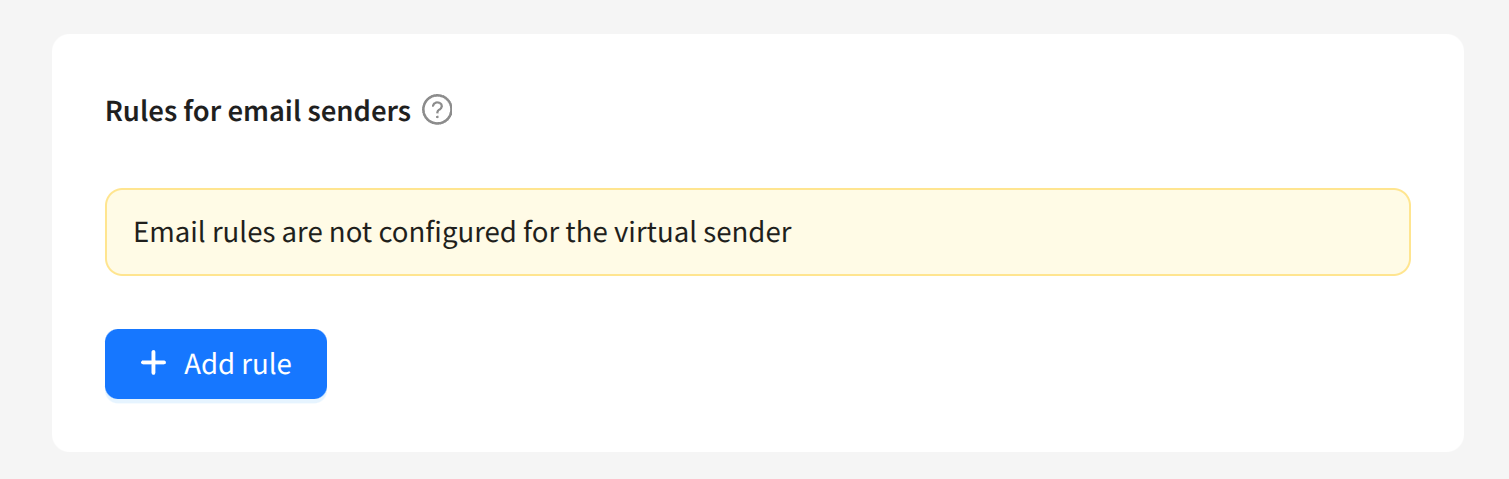 Email sender rules determine which real senders and in what proportions will be used under certain conditions. To add a rule, click + Add rule.