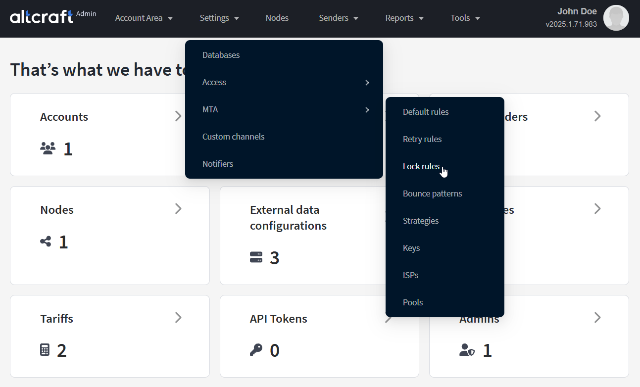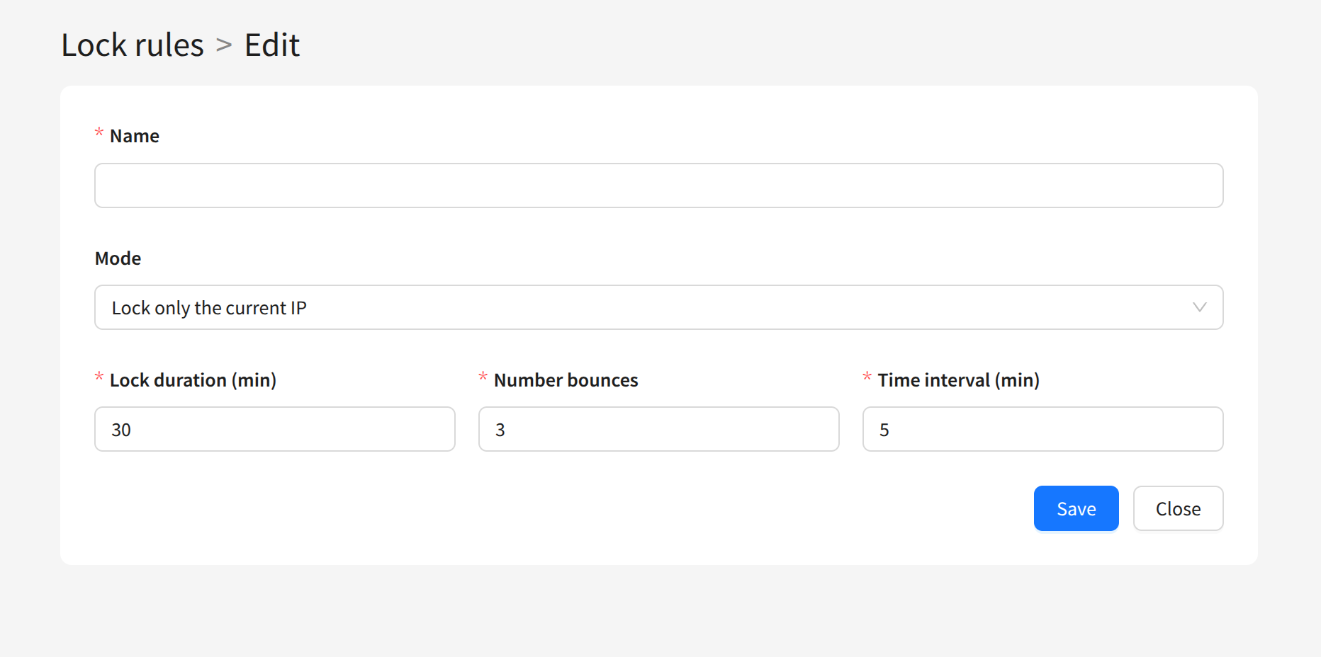 To manage lock rules, in the main menu select Settings — MTA — Lock rules.