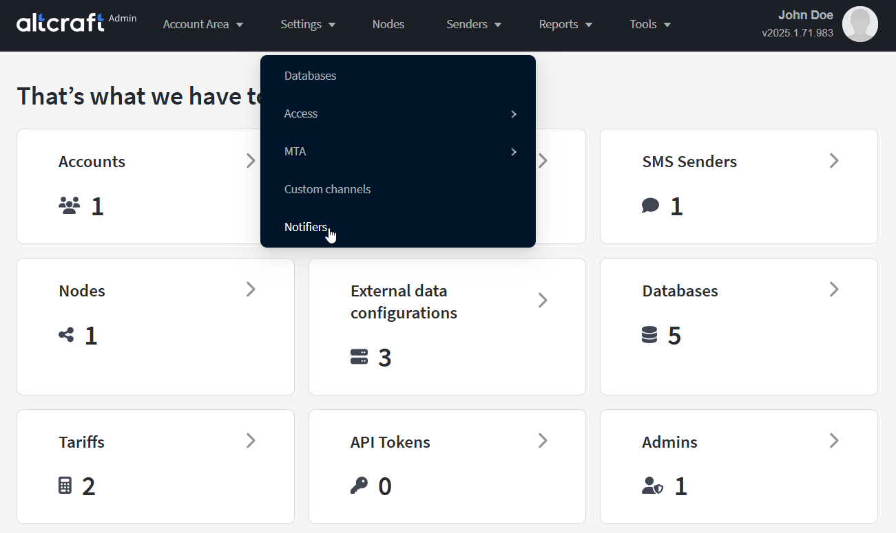 Notification Service is a mechanism in the Altcraft platform designed to automatically inform administrators about issues with message delivery.