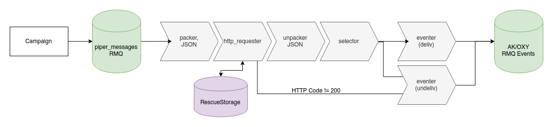Interaction with external services when sending messages and receiving events on them occurs via pipelines.