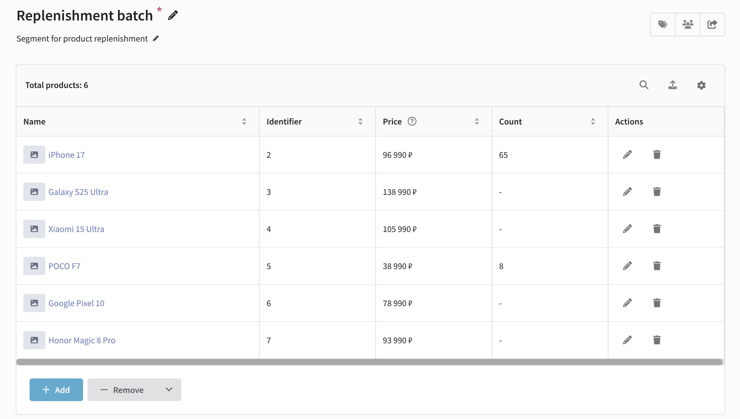 - Added a filter by participation in segments for product segments, as well as the ability to import conditions from another segment.
