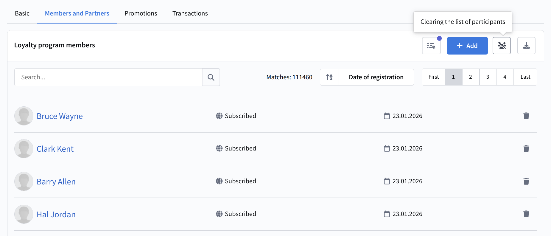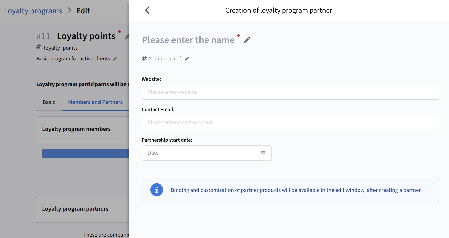 The Members and partners section is used to manage loyalty program members (end users) and partners (companies providing additional benefits).