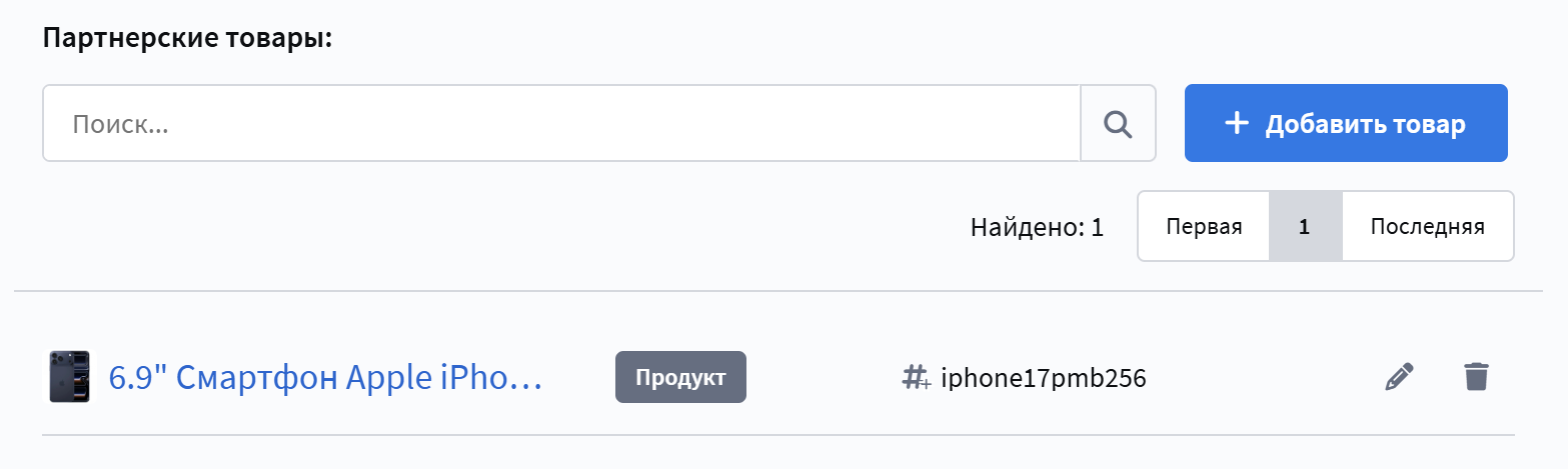 Partner products are used to form special offers within the loyalty program. Such offers are available only to participants for whom the partnership terms apply and are configured through corresponding promotions with the "Discount from a partner" benefit.