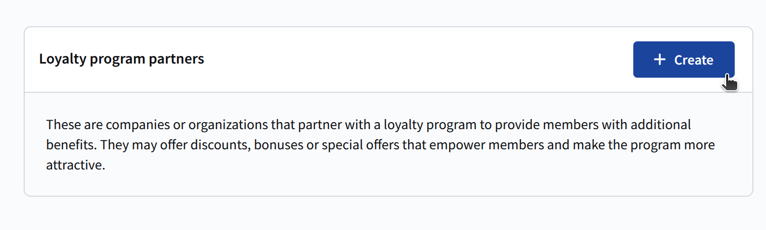 Loyalty program partners — this section manages organizations cooperating with the loyalty program to expand its capabilities. Partners provide participants with additional privileges — from discounts to exclusive offers.