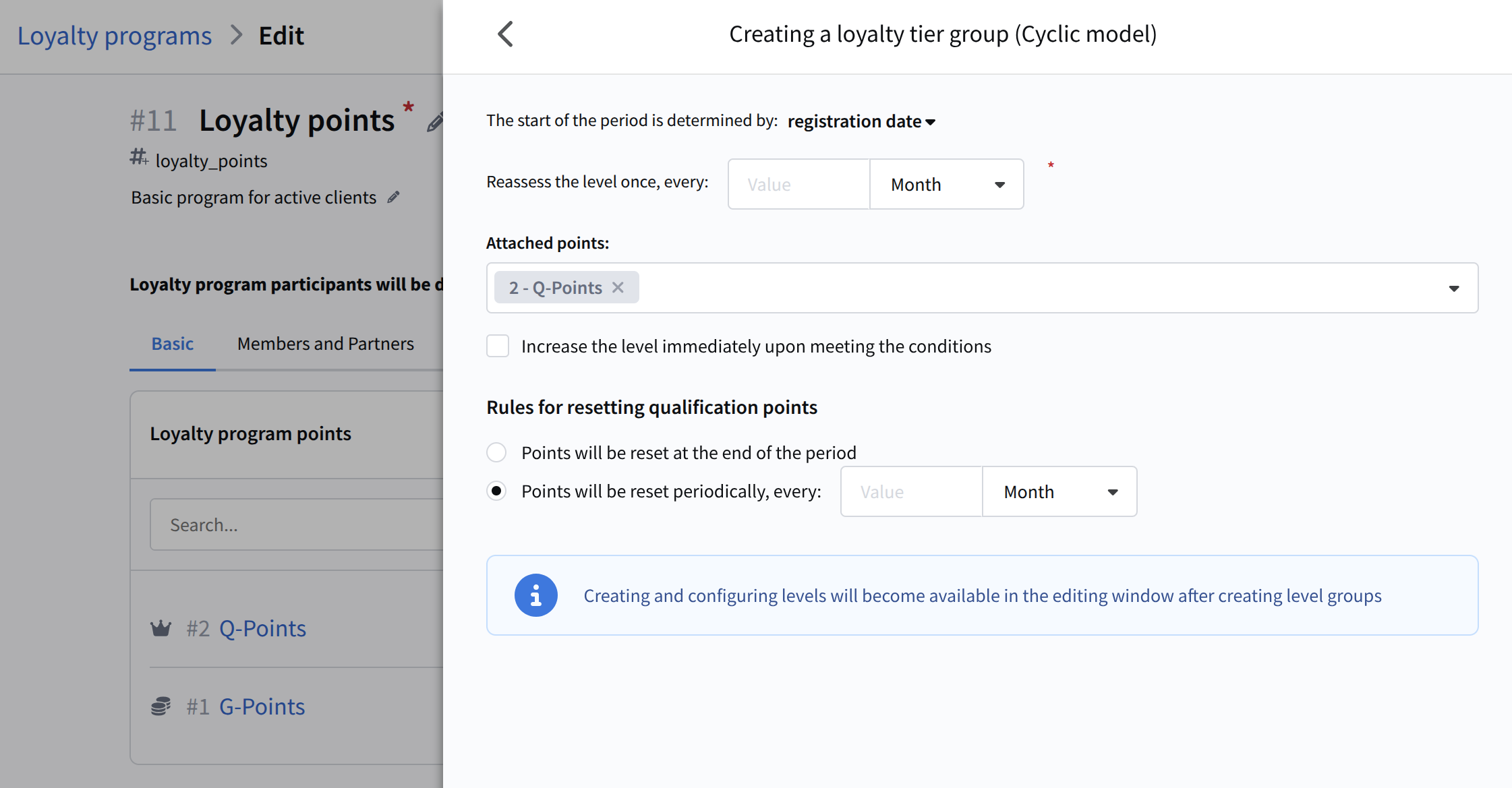 Configure qualification points reset rules, you can choose reset at the end of each period or at fixed intervals (for example, every 6 months);