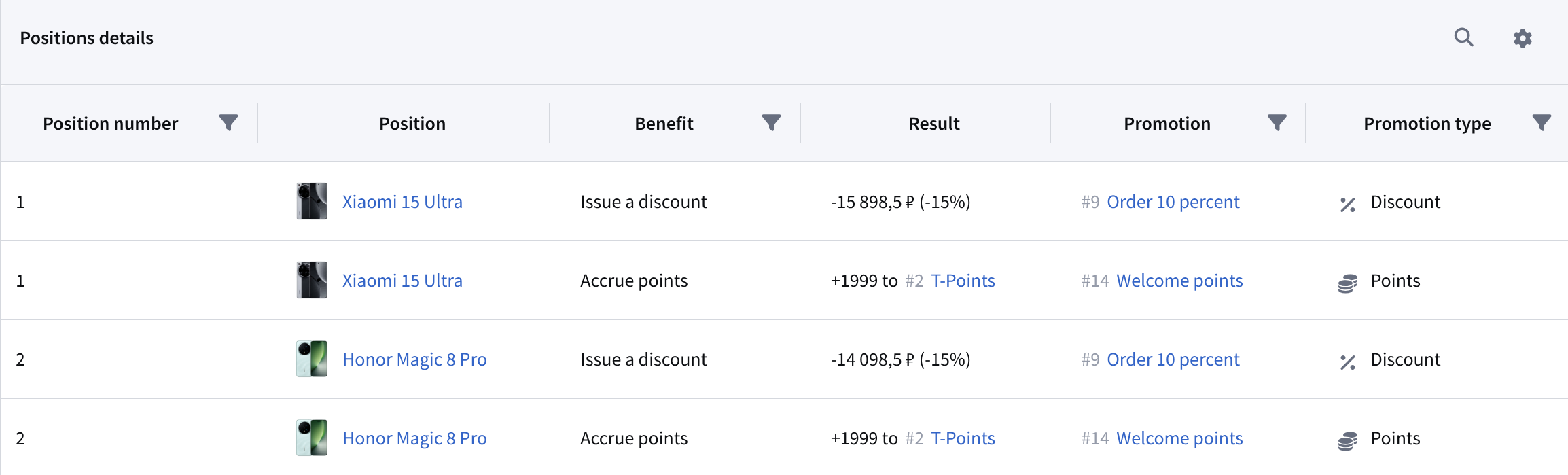 Promotions are divided into two groups: trigger and discount and points promotions.