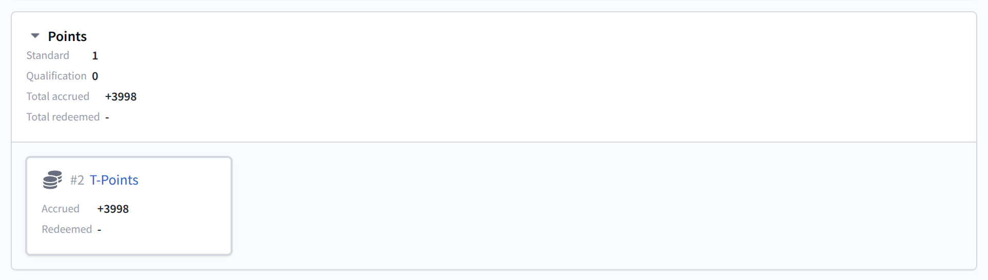 - Value — number of accrued or redeemed points