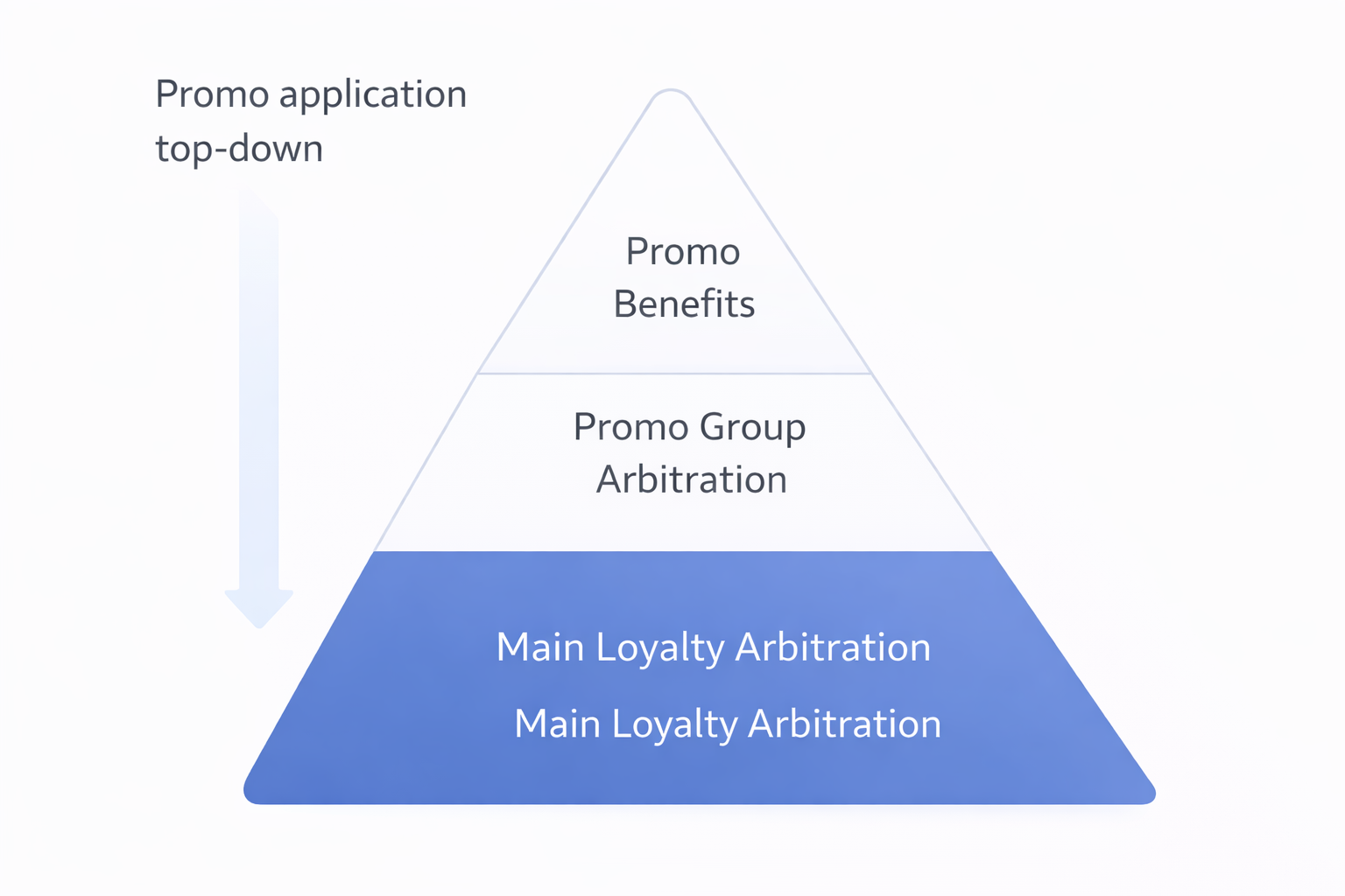 Main arbitration is the core arbitration applied to all points and discount promotions within the loyalty program. It defines the overall benefit calculation logic and always affects the final result, regardless of promotion structure.