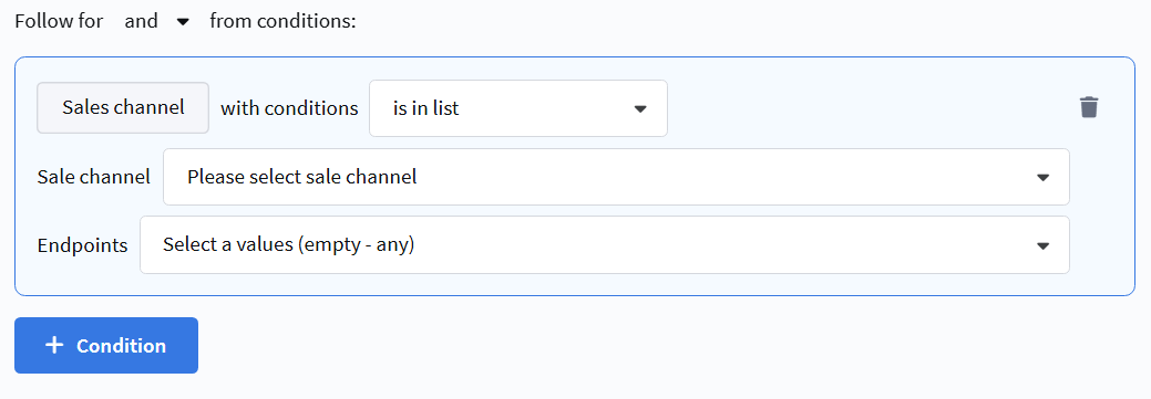 • is not equal — the sales channel type does not match the selected value.