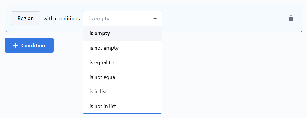 • is equal to — the region matches the selected value.