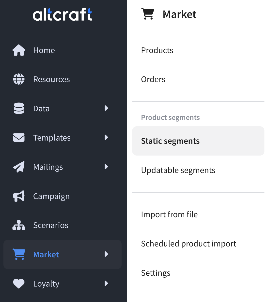 Static product segments are sets of products and their modifiers (SKU) grouped via API or manually using selection conditions.