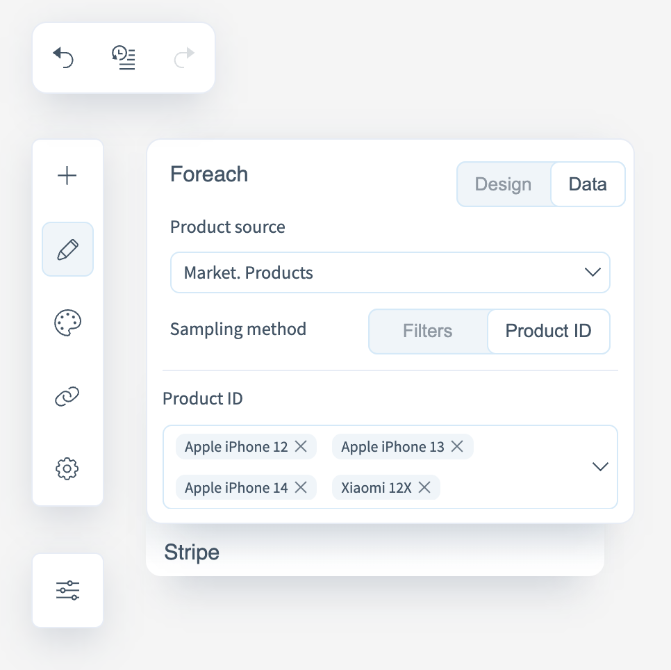 The Products block is used for dynamically generating product sections in newsletters — for example, selections of popular, promotional, or recommended products synchronized with up-to-date data from the CDP.