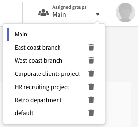 Groups, available to Altcraft users, are displayed in a dropdown menu in the top right corner of the application, next to profile avatar. A user can switch groups from any account object list.