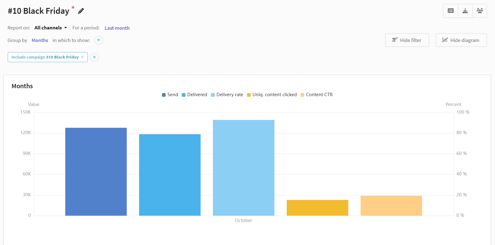 - broadcasts and regular mailings launched at least once.