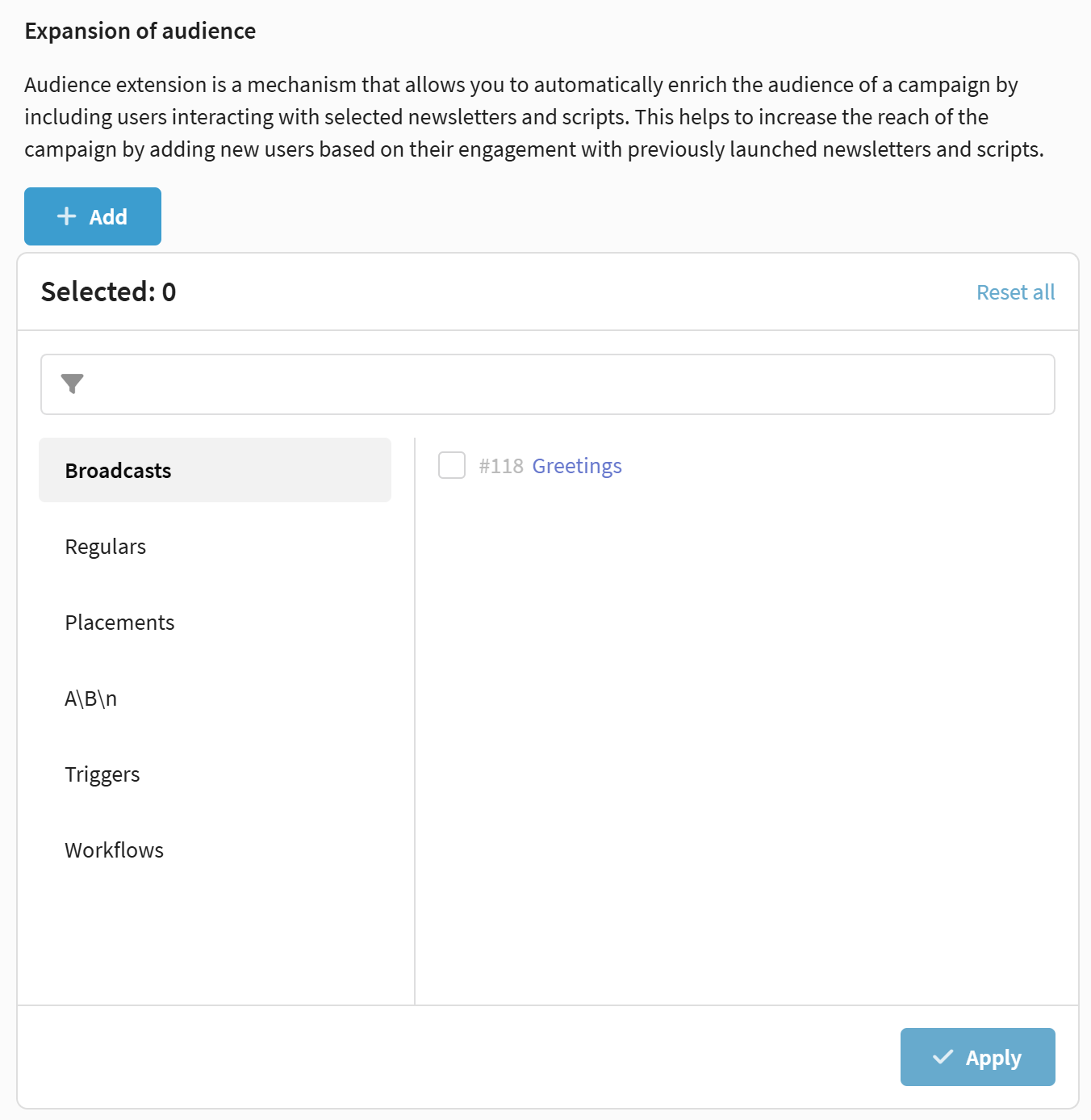 Audience expansion adds new users to the campaign if they participate in selected activities.