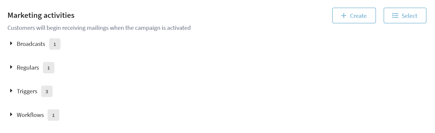 The Marketing activities section contains all activities linked to the campaign.