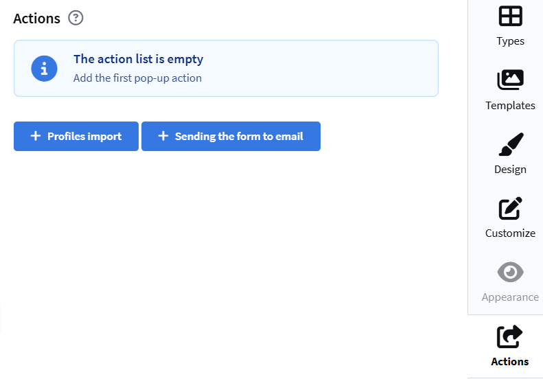 In the pop-up editor, open the Actions tab:
