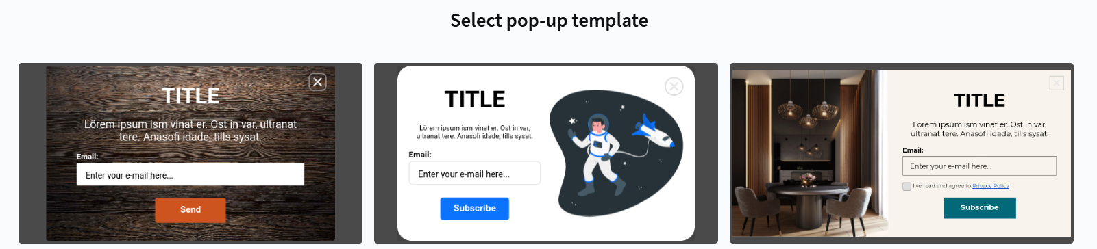Creating a pop-up and choosing a template