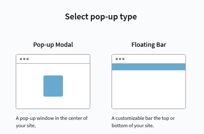 Start by creating a new pop-up in Web Layer — Pop-ups, and click Create. Choose the pop-up type. for a wheel of fortune, Modal window is the best fit—it appears in the center of the screen: