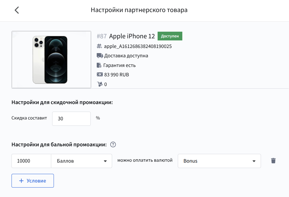 Пользователи могут устанавливать партнеров программы лояльности. Для партнерских товаров из Маркета настраиваются специальные предложения: