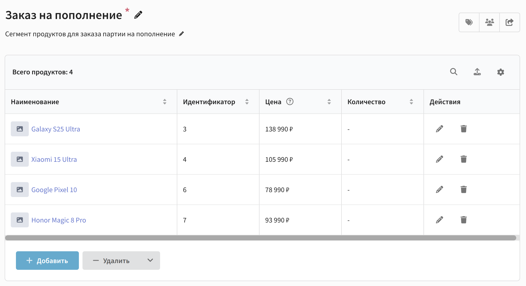 Инструкция по настройке сегментов продуктов доступна в этой статье документации по Маркету.