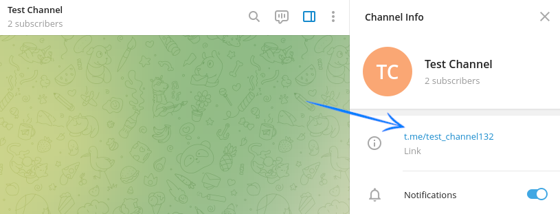 Название заложено в ссылке на канал или группу. Например, если ссылка t.me/test_channel132, то названием канала станет часть после слеша — test_channel132.