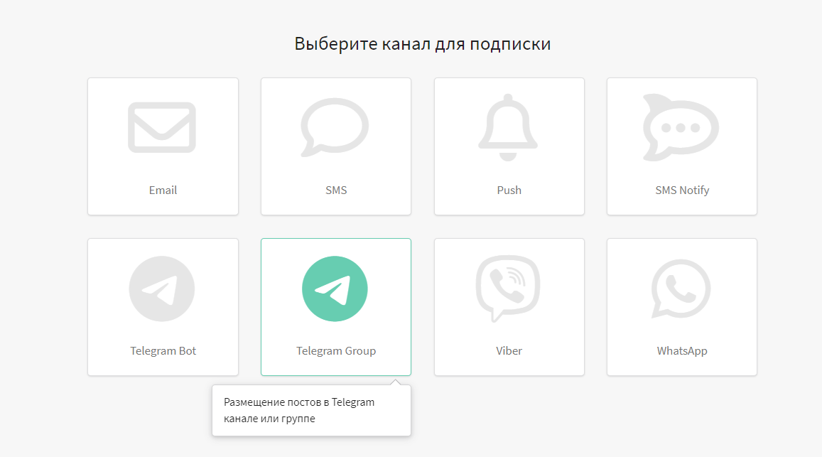 Перейдите в раздел "Шаблоны". При создании нового шаблона выберите Telegram Group канал или добавьте этот канал для уже существующего шаблона.