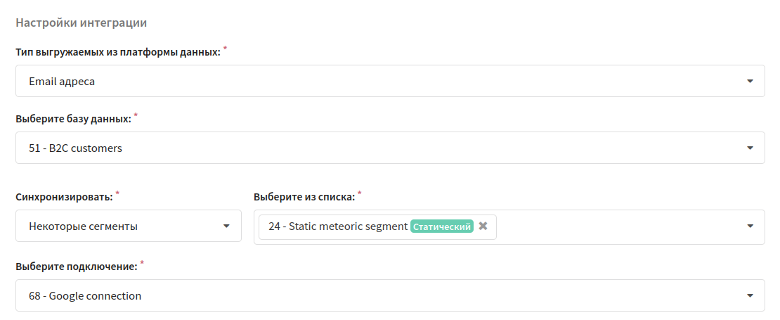 Для интеграции с аудиториями Google Ads необходимо настроить подключение в платформе Altcraft. Подробную инструкции вы найдете в этой статье.
