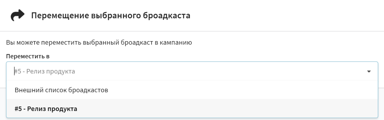 В открывшемся окне выберите, куда нужно переместить активность — во внешний список или в нужную кампанию:
